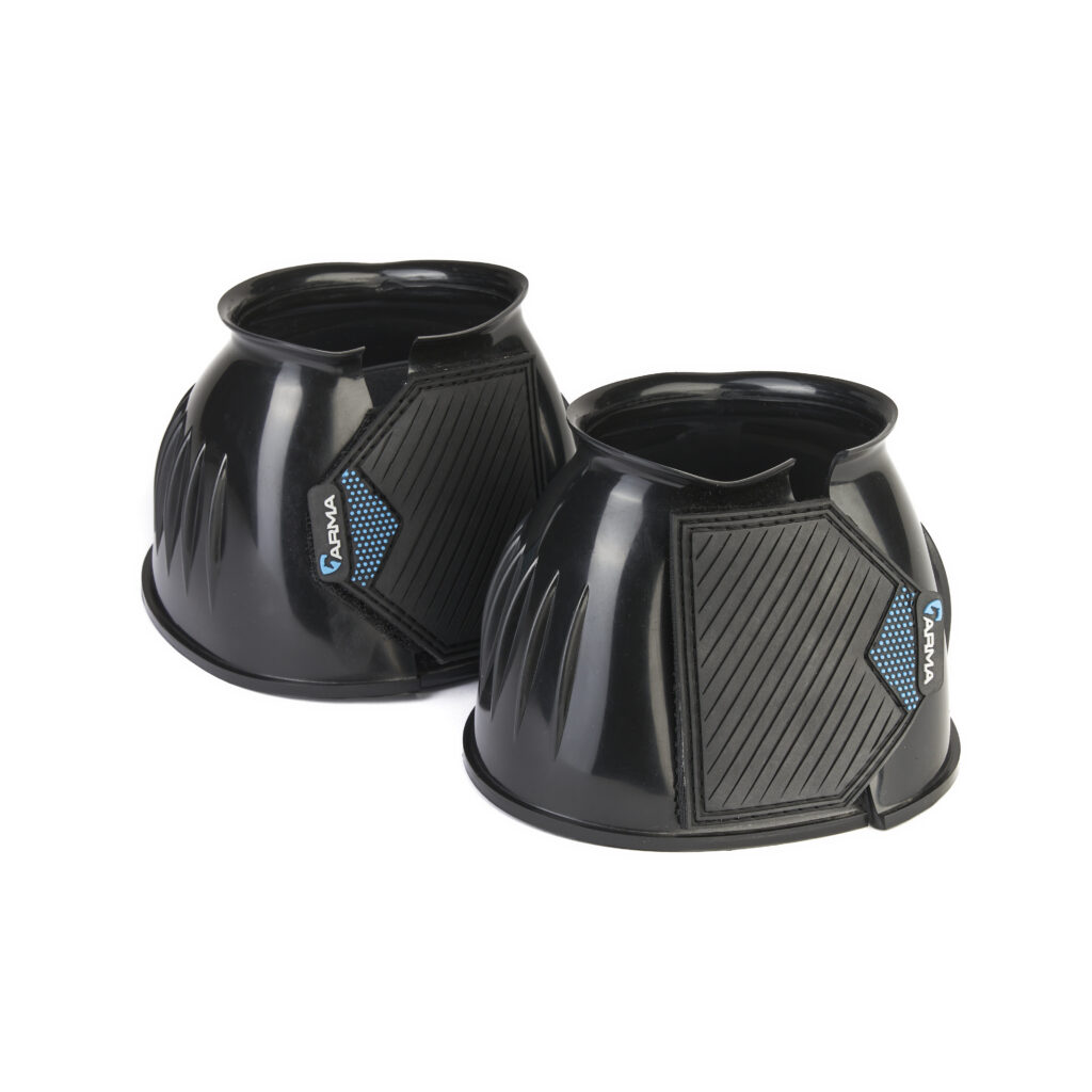 Ideal for schooling, exercise and turnout. Durable over reach boots in bright glossy colours. The flexible material deflects blows to protect the heel bulb. Easy grip double sided touch close straps secure the boot with reassurance. Attractive wide rubber straps are finished with the ARMA logo.