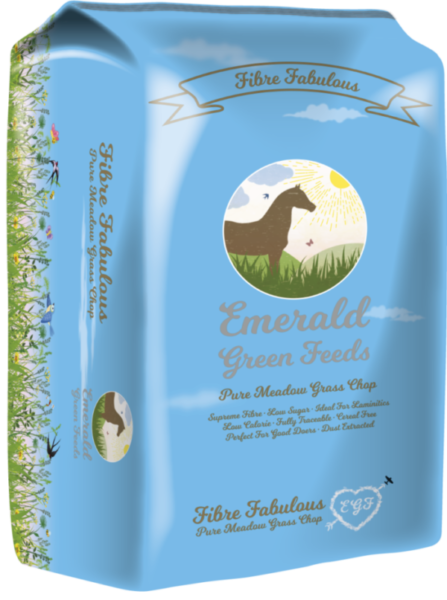 Emerald Green Feeds Fibre Fabulous Chop is made from the same meadow grasses that we grow to make our Meadow Magic Pellets. The grasses used to make this lower energy, low sugar and starch chop have been specially chosen by us and are cut at the perfect growth stage, similar to that of hay, to offer a supreme fibre and lower protein feed. Fibre Fabulous contains nothing whatsoever other than the mature grass it’s made from and is suitable for equines (and foraging animals) that require a lower calorie diet, such as native breeds, the ‘good doers’ and those equines prone to Laminitis. Fibre Fabulous grass is left short-chopped and provides an alternative feeding method to a mash of pellets by promoting chewing and essential saliva production. The chop can be added to soaked pellets to boost chewing time or can be fed alone – dry or dampened. Fibre Fabulous can be fed by itself or alongside any of the other Emerald Green Feeds forages to achieve the individual balance for your animal. The mix of meadow grasses, unique to Emerald Green Feeds, is dried at very high temperature to preserve the forage and seal in the natural goodness. It’s then short-chopped and bagged immediately on site to provide a natural source of nutrients and vitamins that can be used all year round. All the Emerald Green Feeds range is manufactured to a strict code of feed safety by A Poucher and Sons (Bardney Dairies) Ltd. The feeds in our range carry a very practical shelf life of two years from being cut, dried and bagged – each bag is individually stamped with the date of production and even the name of the field where it grew! We don’t just sell the feed, we grow it!