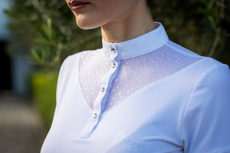 The Amelie Show Shirt is finished with a contrasting white show collar with stock loop.