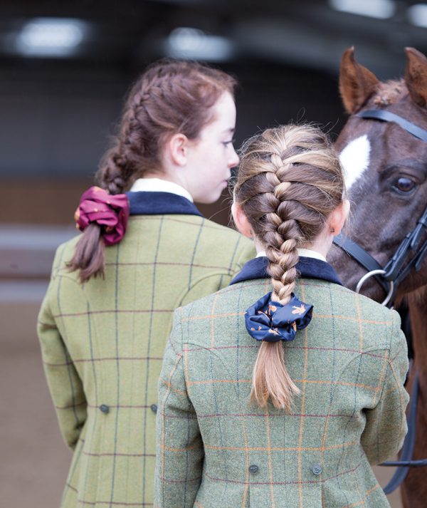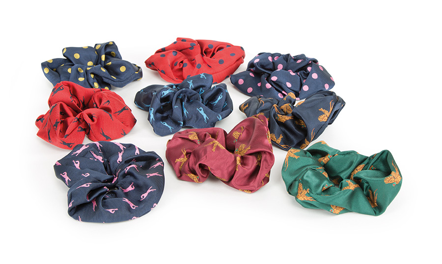 Keep hair tidy with a smart scrunchie to match your show tie.